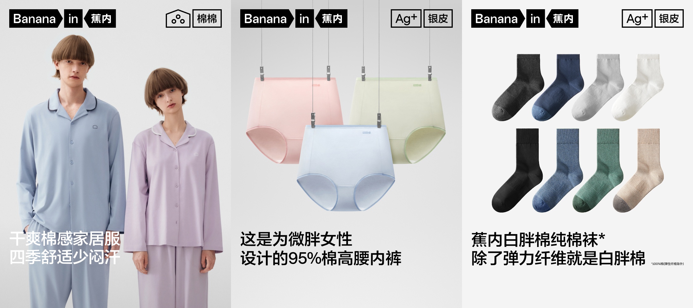 Bananain 蕉内是一家体感科学公司,以贴身层产品与体感小物见长,消解无聊和日常穿衣里那些习以为常的体感困扰。
