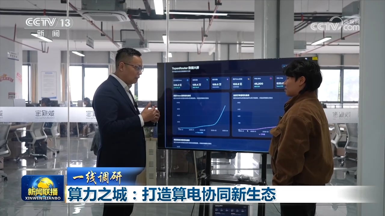 乘客秦海告诉记者,他所在的公司现在最主要的一块业务就是卖词元。词元是大模型处理信息的最小单位,它的消耗量直接反映算力的火热程度。跟着他,记者来到了贵安大数据科创城这家企业。负责人说,今年1月初,公司的词元日调用量还不到30亿,而到了4月,这个数字已经飙升至近120亿,订单数量也从不到7万笔增长到超过28万笔。这意味着每天有数以亿计的运算指令,从全国各地涌向贵安的服务器。