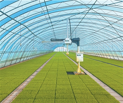 黑龙江北大荒集团友谊农场通过机械作业手臂等先进技术进行智能育秧,提高秧苗品质、降低生产成本。韩国龙仁市农机设备从业者 朴睿璘 摄