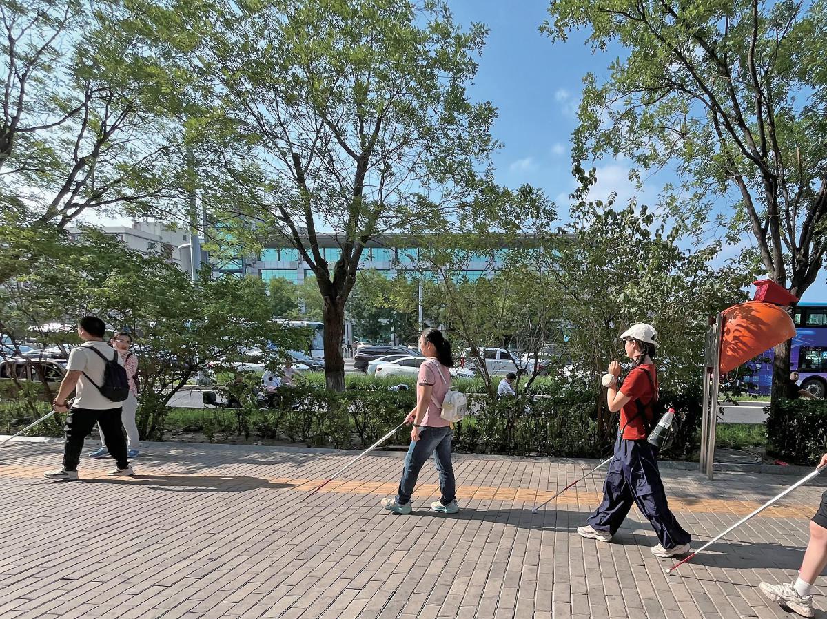 每次训练回到教室,学员们都会先交换一路上捕捉到的细节线索。很快,话题就转到盲杖上,你的杖头磨得快吗?用折叠的还是伸缩的?滚轮头是不是更顺手?